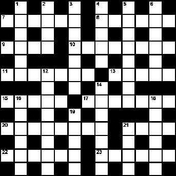 ACROSS: 7. Red fruit (6), 8. An agreement (6), 9. Water activity (4), 10. Pieces (8), 11. Non-attendance (7), 13. Slightly inebriated (5), 15. Quarrel (5), 17. Brine (7), 20. Holding tightly (8), 21. Pain (4), 22. Customer (6), 23. Soak up (6).