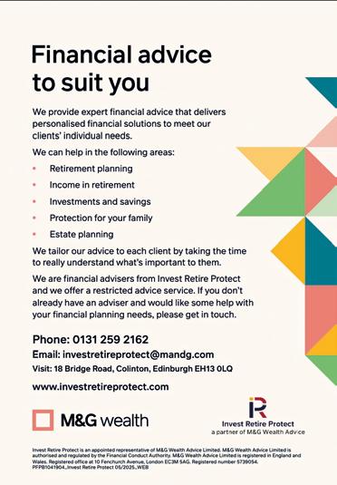 COLINTON LITERARY SOCIETY - Meetings start with coffee, tea and wine at 7.30pm and are held at Dreghorn Hall, 22 Dreghorn Loan, EH13 0DE. Full programme details are at edinburghpentlands.church/ church-life/church-andcommunity-groups/colintonliterary-society/