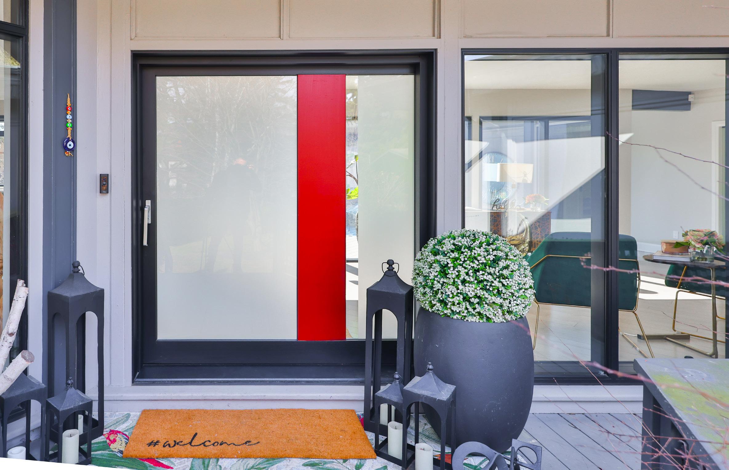 As you step into the foyer of this extraordinary residence, you are immediately enveloped in an atmosphere of warmth, sophistication, and architectural brilliance. Gleaming hardwood floors stretch seamlessly across the main living areas, their rich tones enhancing the sense of elegance that defines this home. The foyer itself is a breathtaking prelude to the residence’s impeccable design, where custom Bauhaus windows frame captivating views of both the front and back yards. Sunlight pours through these expansive glass panels, bathing the space in a soft, natural glow and creating a serene connection to the outdoors.