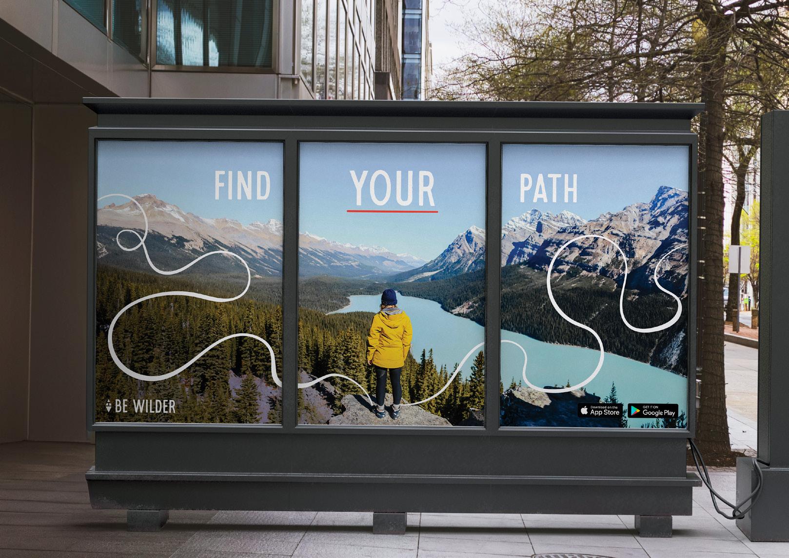 Be Wilder's print material includes store posters, street posters, bill boards, and more. It's important that Be Wilder has public representation and marketed in spaces where any solo hiker could see it.