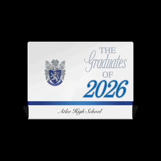Official Class of 2026 announcements may feature your school’s official building or school mascot etching.