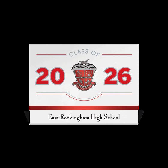 Official Class of 2026 announcements may feature your school’s official building or school mascot etching.