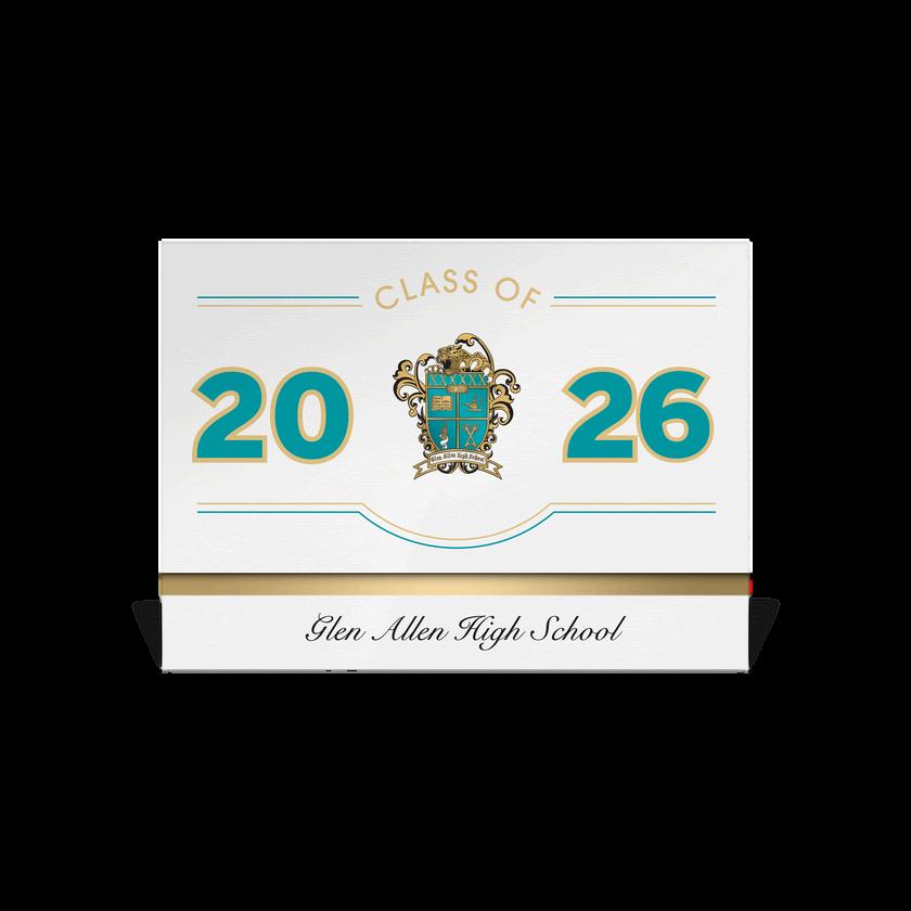 Official Class of 2026 announcements may feature your school’s official building or school mascot etching.