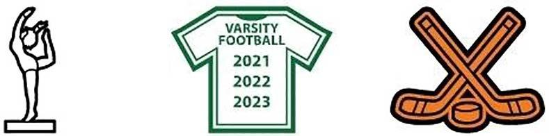 AVAILABLE SYMBOLS INCLUDE: BARBELL, BASEBALL, SOFTBALL, CHRISTIAN FAITH, CROSS, DRAMA MASK, FLEUR DE LIS FOOTBALL, HEART, LAMP KNOWLEDGE, LYRE MEGAPHONE, PAW, PAW WITH CLAWS, STAR SOCCER BALL, TENNIS BALL, TRACK WINGED FOOT, TREBLE CLEFT, VOLLEYBALL