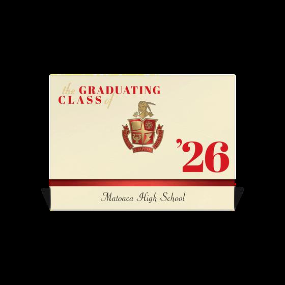Official Class of 2026 announcements may feature your school’s official building or school mascot etching.