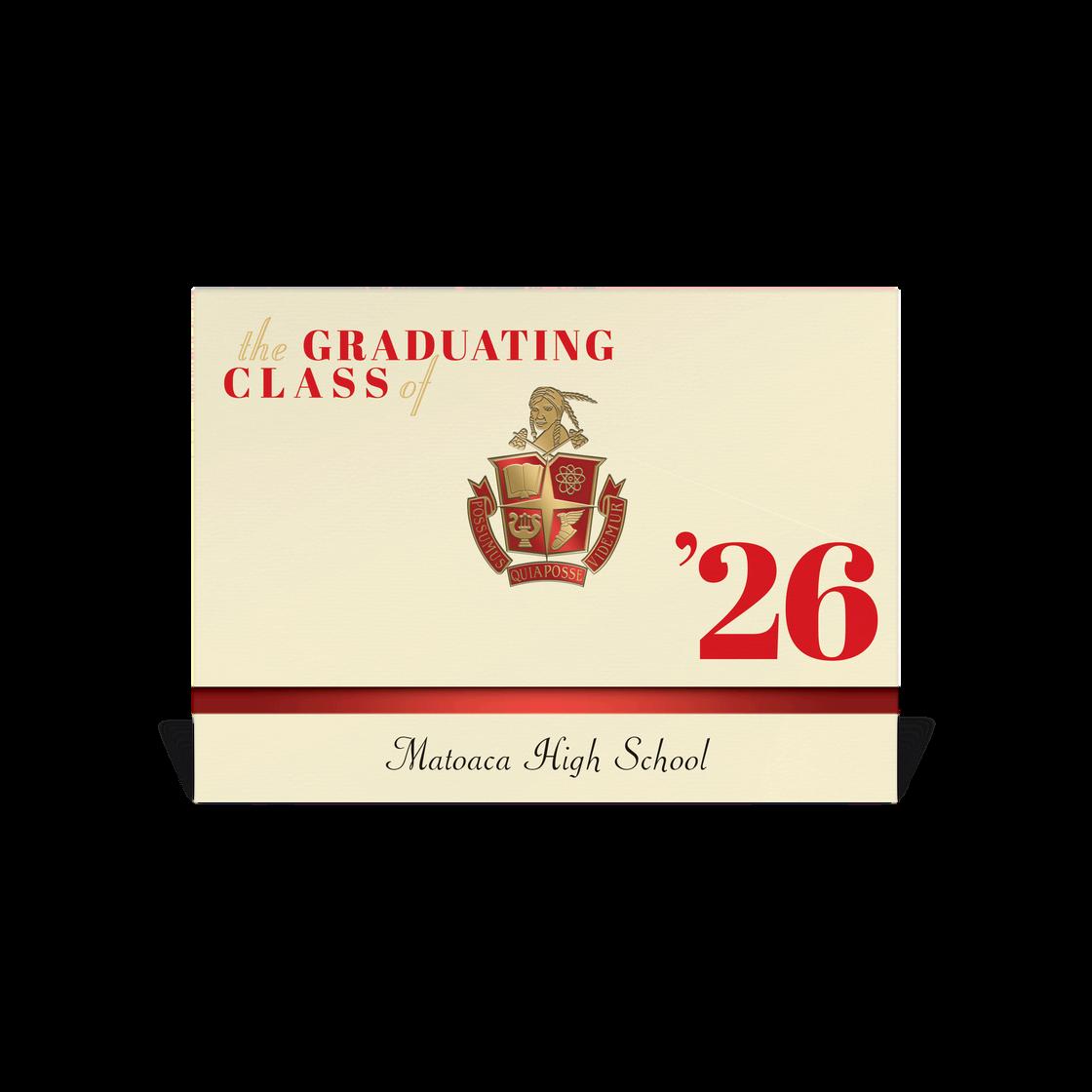 Showcase your diploma in this sleek frame featuring a double grey mat and Class of 2026 printed in black on the bottom mat border. Accommodates 6"x8", 7"x9", 8"x10", and 8.5"x11" diplomas (horizontal or vertical orientation).