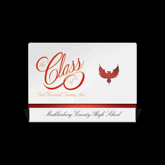 Official Class of 2026 announcements may feature your school’s official building or school mascot etching.