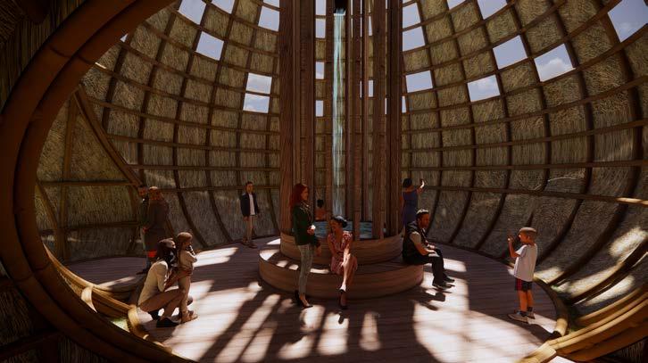 Our pavilion is dedicated to telling many stories regarding climate change. The first story is told by the form our pavilion takes. Dedicated to nature, it symbolises rainfall and the cycle a rain drop takes to be formed before coming to rest on a surface. It also represents the collection of water that subsequently creates a type of peatlands call bogs. Finally the skin of our pavilion is scattered and fragmented, which is in direct relation to the destruction of our planet and how fragmented we are as humans, from actually looking after our planet.