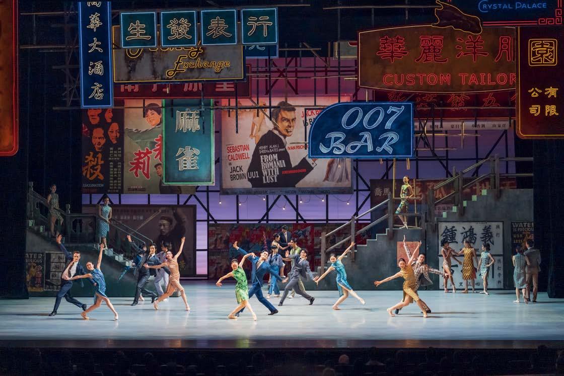 In the 1960s-1990s, Hong Kong cinema was very popular and influential in Asia. Drawing inspiration from energetic city scenes in Hong Kong action films, we have crafted a world which embodies 1960s Hong Kong. Incorporating ubiquitous neon signs, distinctive bamboo scaffolding, loud Chinese restaurants and bustling markets, our goal was to recreate the essence of the era. The costume designs fused Eastern and Western elements, blending elegant cheongsams with stylish leather jackets alongside bold patterns, vivid colours and statement accessories to mirror the personalities in Romeo + Juliet. This production is a love letter to my adopted home.