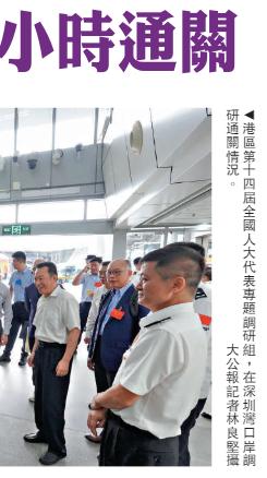 为了更好、更快、更深入推动粤港澳大湾 区的纵深发展,第十四届港区全国人大代 表于2024年5月30日至6月3日到广东省 的深圳、佛山、广州南沙以及广州进行调 研。调研中代表们深入了解了广东在发展 新质生产力、环保事业以及文化产业方面 的工作以及取得的成就,并且举行针对粤 港合作中有关机制衔接的专题研讨会。本