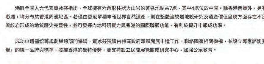 倡議香港申報世界自然遺產,共鑄「中國流紋岩」新篇章