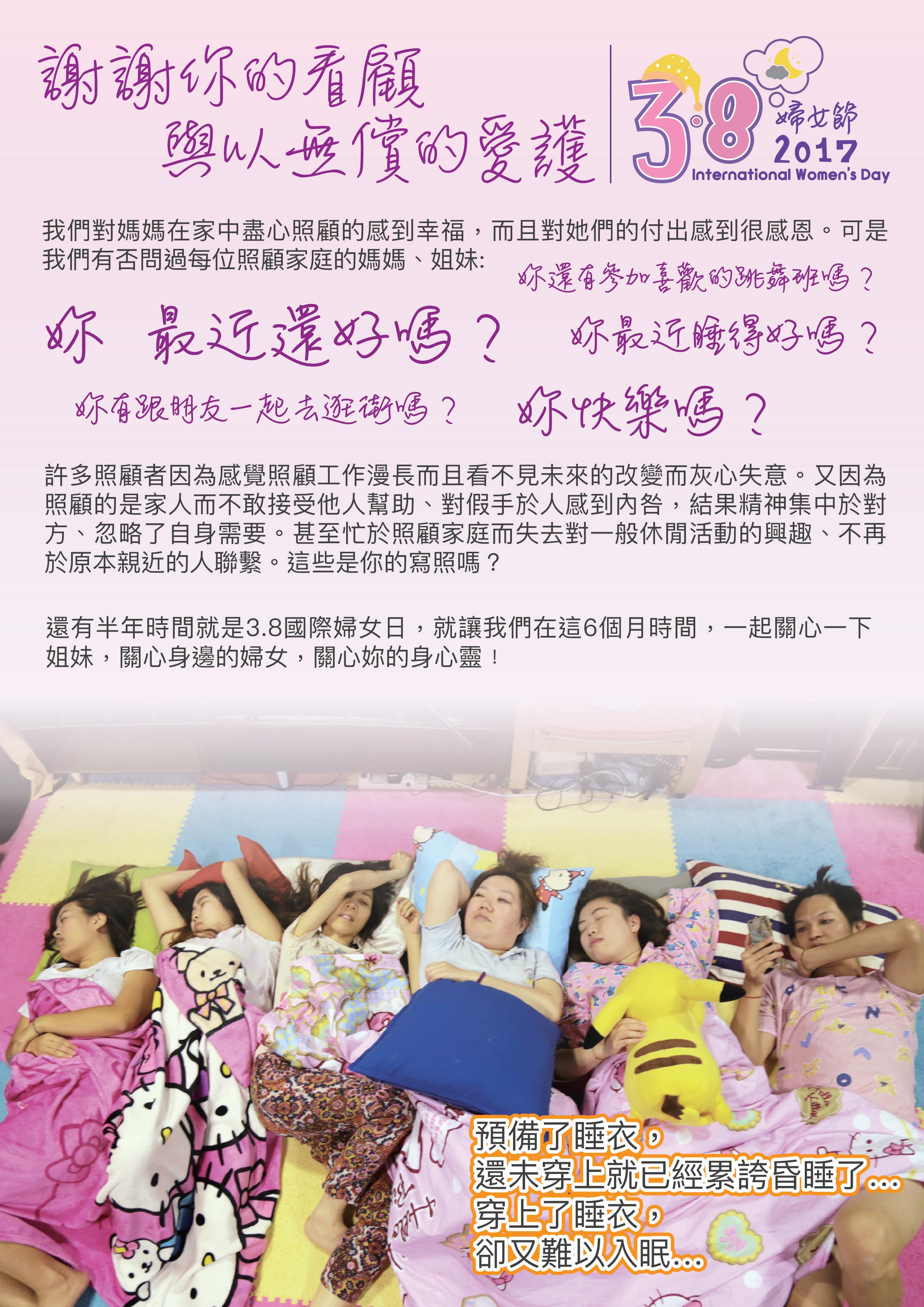 我們倡議女性有獨立而自主的生活及能力,肯定家務勞動的價值,不 是鼓勵女性留在家中,也不是責備職場女性,而是社會福利應為兩性的權 力關係帶來社會與經濟的改變。因此託兒服務背後,盛載性別平權的想法。
