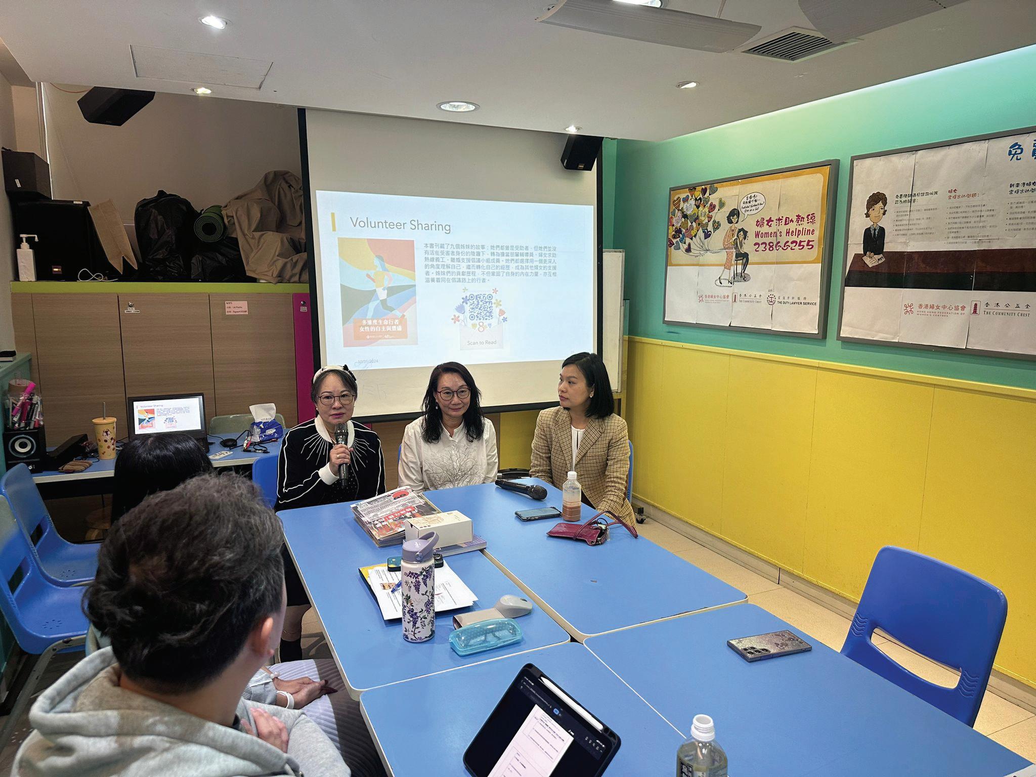 當日除了由總幹事分享婦女中心的婦女參與階梯外,亦有本會熱線輔導義工惠而及 法律諮詢服務朋輩輔導員Portia的親身分享。