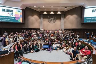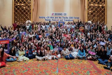 近300個來自亞太地區的民間社會組織(CSO)參加了民間社會組織論壇, 並制定了聲明。該聲明反映了新自由主義全球化與殖民遺產及新殖民主 義如何不成比例地影響該地區婦女權益,特別強調了推進具性別考量的 經濟正義和有尊嚴的勞動的必要性,促進婦女在決策中的參與和領導地