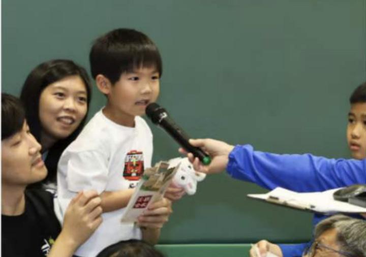 蕭澤頤在學生帶領下參觀攤位 小朋友投入攤位遊戲當中 獎品豐富