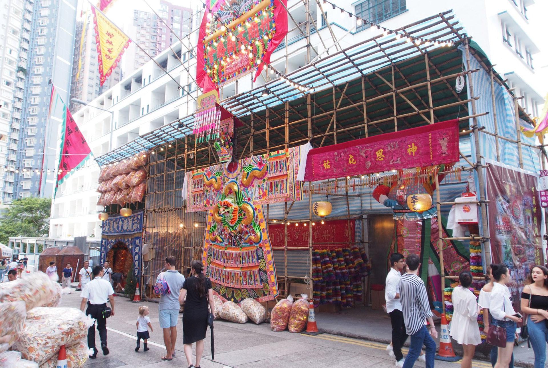 此外,香港早於開埠前已有潮汕人聚居於中西區,每 年農曆七月,適逢盂蘭勝會(中元節),有很多潮汕非物 質文化遺產活動,包括搶孤活動、派米及神功戲等。楊開 永認為,戲棚小食街更能推動「夜繽紛經濟」,也可以與 大灣區其他城市合作,例如邀請潮汕地區的潮劇表演團來 港進行文化交流,弘揚潮人精神,推廣潮州文化,也可以 發展成為旅遊項目的新亮點,說好香港故事、中國故事。