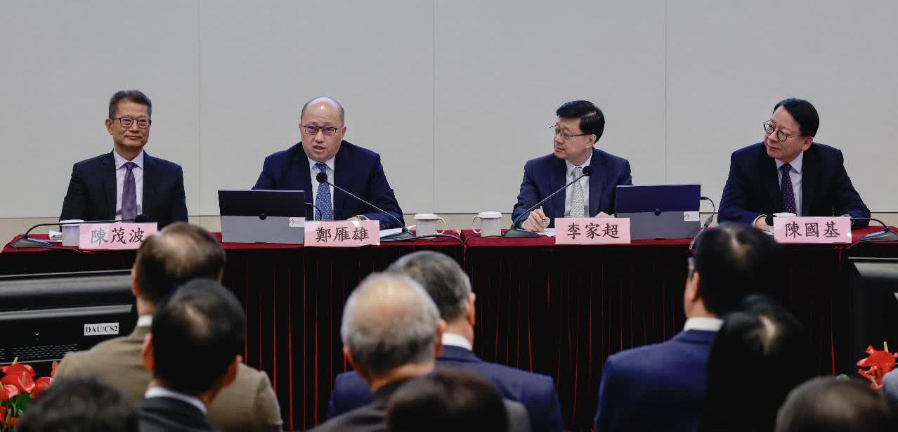 座談會上,與會代表分享了學習貫徹全國兩會精神的 體會和建議。特區政府政制及內地事務局局長曾國衛、公 務員事務局局長楊何蓓茵、創新科技及工業局常任秘書長 麥德偉、發展局常任秘書長劉俊傑等作交流發言。大家紛 紛表示,通過對全國兩會精神的深入學習,既可以堅定對 國家發展的信心和底氣,更能夠結合香港實際謀劃高質量 發展。當前「一國兩制」重回正軌,香港邁入由治及興新 階段,當務之急是拼經濟、謀發展、惠民生,不斷提升市 民的幸福感、獲得感,同時主動對接國家重大戰略,因地 制宜發展新質生產力,與大灣區其他城市協同發展、錯位 發展,在民族復興偉業中作出香港貢獻。