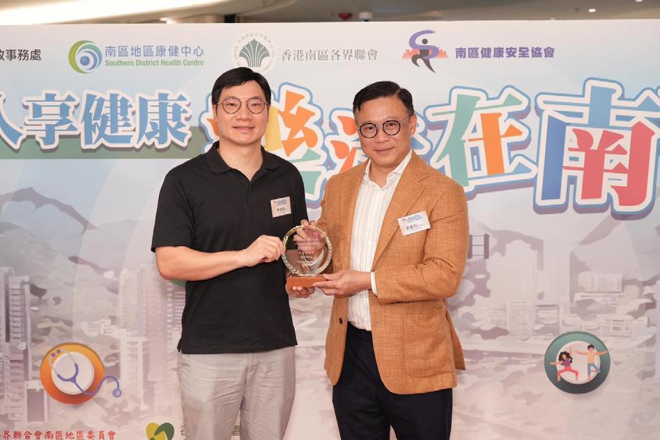 南區民政事務專員兼南區區議會主席鄭港涌也對活 動表示高度評價,他認為,這與政府強化社區健康支援 的策略不謀而合,必將為市民的健康福祉做出重要貢獻。 通過各界通力合作,「人人享健康, 樂活在南區」活動必將成為一個能 持續推動社區健康事業的品牌。他 相信,這樣的健康推廣活動不但能 夠提升南區市民的健康意識,更能 激發起大家共同建設健康南區的熱情,為這個美麗的社 區注入更多活力和希望。