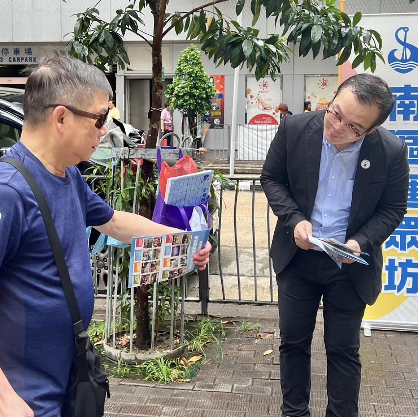 南區區議員陳郁傑表示,透過這次活動,可以直接聽 取居民意見和反饋,全面了解他們的需求和期望,從而提 出更有針對性的改善方案,推動社區持續發展,提升居民 生活品質。作為專業工程師,他擁有豐富的工程知識和經 驗,能為居民提供專業建議,協助解決各種技術性問題。