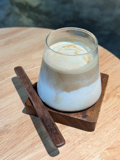 Dozy咖啡店以其獨特的創意菜單和匠心製作的咖啡, 成為了食客們心中的味蕾聖地。菜單上獨具廣東話特色的 咖啡名「Mimi momo」、「GeeGee GatGat」等,勾起不少 食客的興趣。同樣,這裏的每一杯咖啡都由經驗豐富的咖 啡師親手調製,從精心挑選豆子到細心研磨,再到最後的 衝泡,每一個環節都經過仔細打磨,確保為每位顧客帶來 最優質的飲品體驗。無論是經典的拿鐵還是特色的手衝咖 啡,都能在Dozy找到令人滿意的選擇。