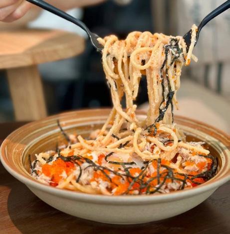 除了卓越的咖啡,Dozy的菜單上還有多款值得推薦的 美食。特別是北角限定的「全素意粉」,這道菜以厚實的 腐竹球、香濃的麵豉豆乳及清脆的牛蒡為主要配料,口感 豐富且健康。此外,還有煙燻三文魚搭配牛油果、溫泉蛋 的忌廉貝果,以及Bruch ProMax搭配有柚子忌廉醬,酸甜 在味蕾中炸開,更是增添了食物整體的層次。