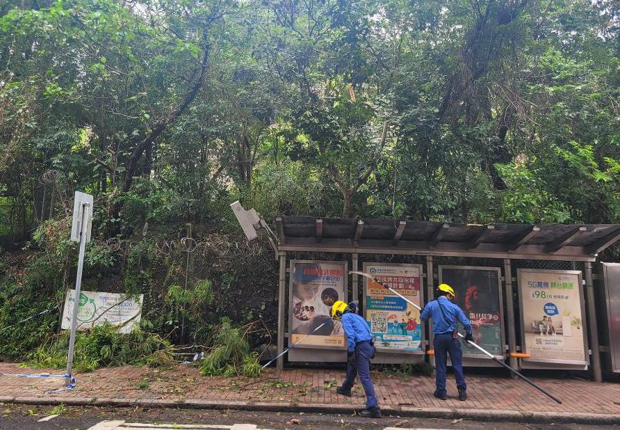 風後,南區區議員蕭煒忠與立法會議員 陳學鋒及西分區委員巡視區內的狀況,發現 數碼港道大致正常,域多利道有樹木倒塌, 資訊道有部份位置輕微水浸,有行人過路燈 受損,他們立即通知部門跟進。