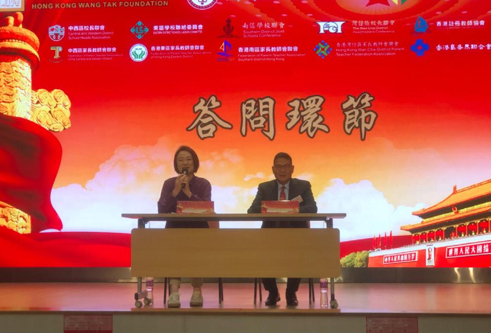活動由香港區家長教師會聯會主席丁柏希、香港島校長聯會主席詹漢銘校長共同發起,邀 請中聯辦港島工作部副部長楊成偉,一眾港島區校長、教師、家長、學生共300多人出席 分享會,與會者認真聆聽、反應熱烈。