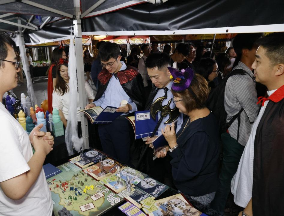 而在十月三十一日的萬聖節,除了扮鬼扮馬外,灣仔 青年聯會更聯同一眾青年聯手舉辦「灣仔Halloween青年 創意市集」,活動獲灣仔民政事務助理專員張皓壹、灣仔 警區助理警民關係主任歐鎮銘督察、灣仔區議員劉珮珊、 李文龍等到場,以行動支持青年創業。
