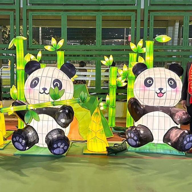 活動現場也設置了多個花燈及巨型吹氣熊貓公仔,吸 引了眾多家庭前來打卡,增添了活動的趣味性。孩子們在這 裏快樂地嬉戲,笑聲不斷,展現出南區居民的和諧與幸福。