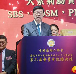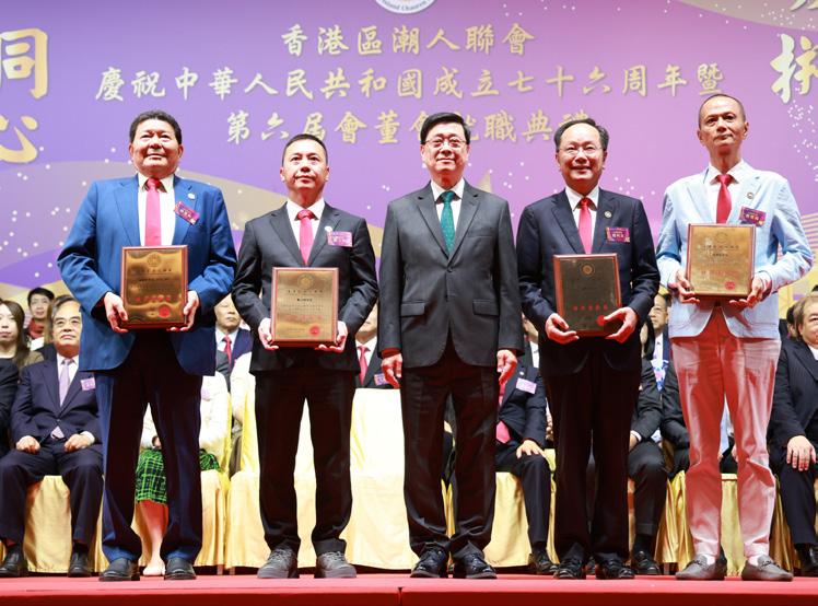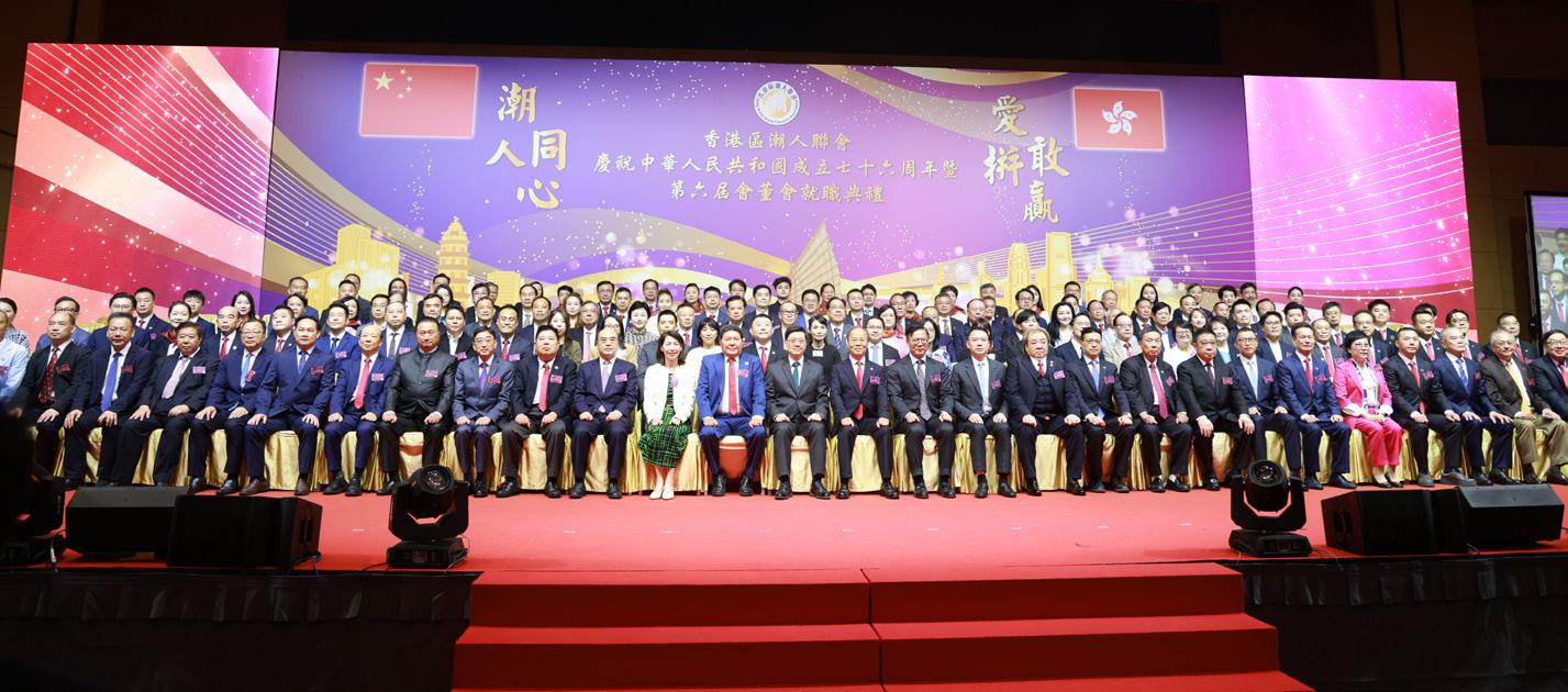 香港區潮人聯會八月十九日 在 會展中心舉行「慶祝中 華人民共和國成立七十六周年暨第六屆會董會就職典禮」。