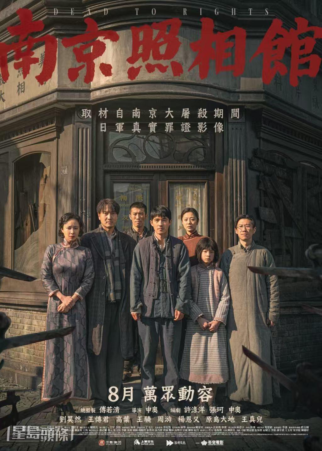 八月廿四日,港島聯中西區地委會更 於中環娛樂行英皇戲院優先播映現時內地 熱映的《南京照相館》,影片以南京大屠 殺為背景,講述一群平民在戰亂中躲進照 相館避難,並冒險揭露日軍暴行的故事。 故事改編自愛國青年羅瑾、吳旋拚死守護 一本染浸同胞鮮血的歷史相冊的真人真事, 最後相冊成為審判戰犯的南京軍事法庭上 裁決戰犯谷壽夫的重要證據。