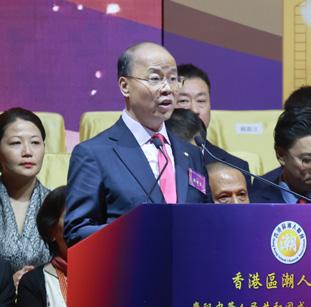 謝曉東在致辭時感謝行政長官的肯定,感謝社會各界 十六年來對香港區潮人聯會的支持。強調聯會堅定擁護「一 國兩制」方針和基本法,支持特區政府依法施政,落實愛 國者治港,為香港「由治及興」貢獻力量。他提到,香港 區潮人聯會會員逾40000名,涵蓋工商、專業及基層群體, 並擁有近3200名骨幹義工,大家始終秉持「團結潮人、 愛國愛港、弘揚文化」宗旨,服務鄉親、服務香江、服務 家鄉。未來聯會將以工商專業領袖為龍頭,匯聚各界精英 翹楚,推動社團年輕化、專業化發展,並提出「興治理強