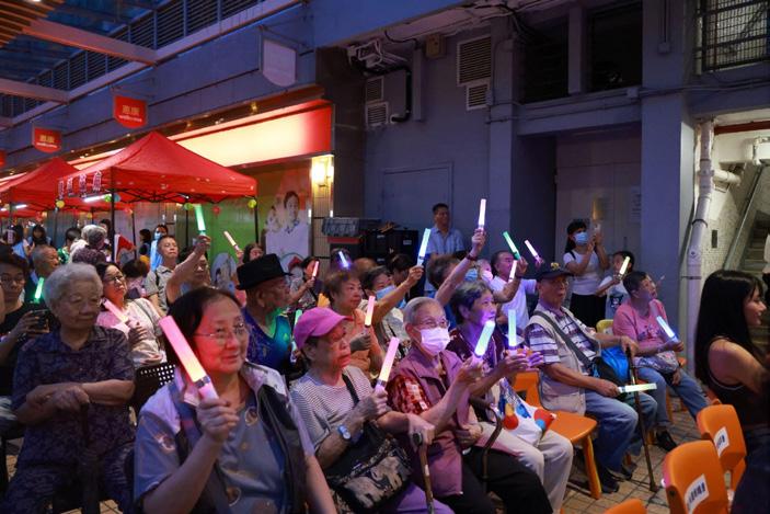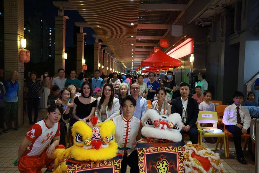 九月十九日,灣仔天后關愛隊舉辦「賀 國慶迎中秋嘉年華」,為居民準備了包括歌 唱、舞獅、功夫等表演及各式攤位遊戲,並 請來著名歌手Joe Junior、蘇姍,以及藝人黃 建東、龐景峰等鼎盛陣容,與街坊一同慶祝。