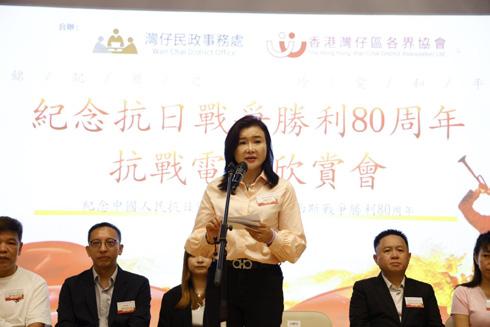 香港灣仔區各界協會佘靜怡主席致辭 時稱,今年既是國慶76周年,同樣是抗 戰勝利 80 周年,提醒每一個人和平來之 不易,國家的富強是前輩們用熱血同生命 換來的。這都是今次演唱會希望傳遞的重 要含意:用歌聲記住歷史,用旋律珍惜當 下;同時,今年是灣協成立30周年,「30 年來,協會不是只會舉辦『運動會』、『演 唱會』這類大型活動,灣協在社區入面做 了很多 『小事』,比如回收舊衣物、派