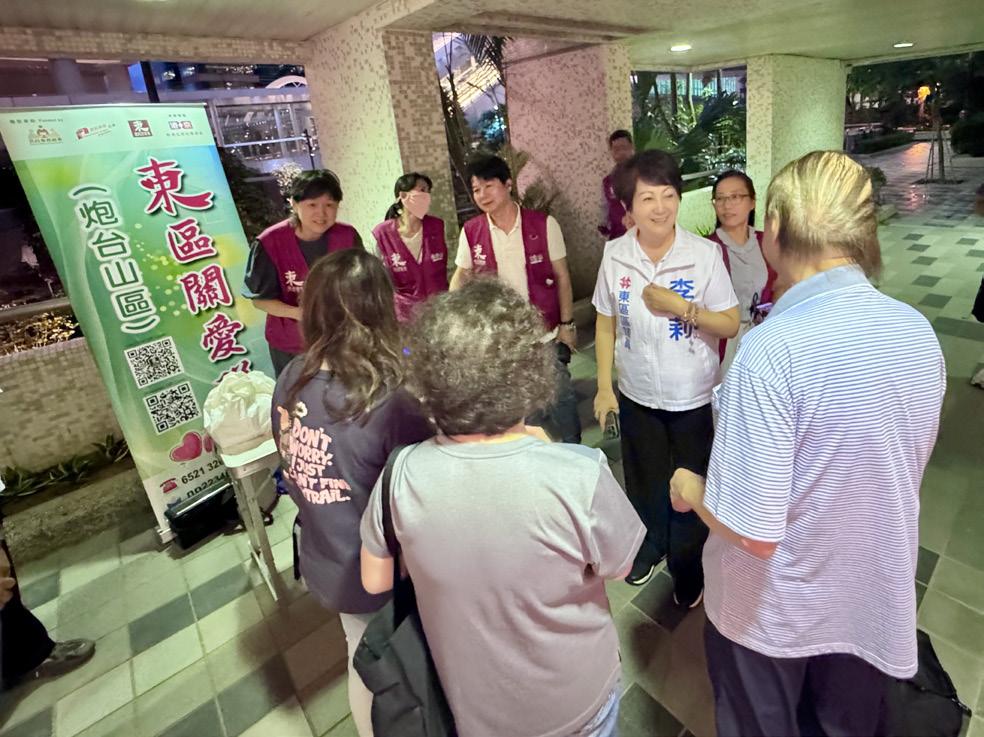 東區35隊關愛隊全數出動。李 莉讚嘆:「上班時間兩點通知, 四點半義工已全部就位!」隊員 們先聚餐備戰,再分組持名單逐戶 敲門。每棟樓配一名區議員、一隊關 愛隊及警方小隊,確保「不留一戶、不漏 一人」。6000人在三小時內安全撤離,無人 受傷。
