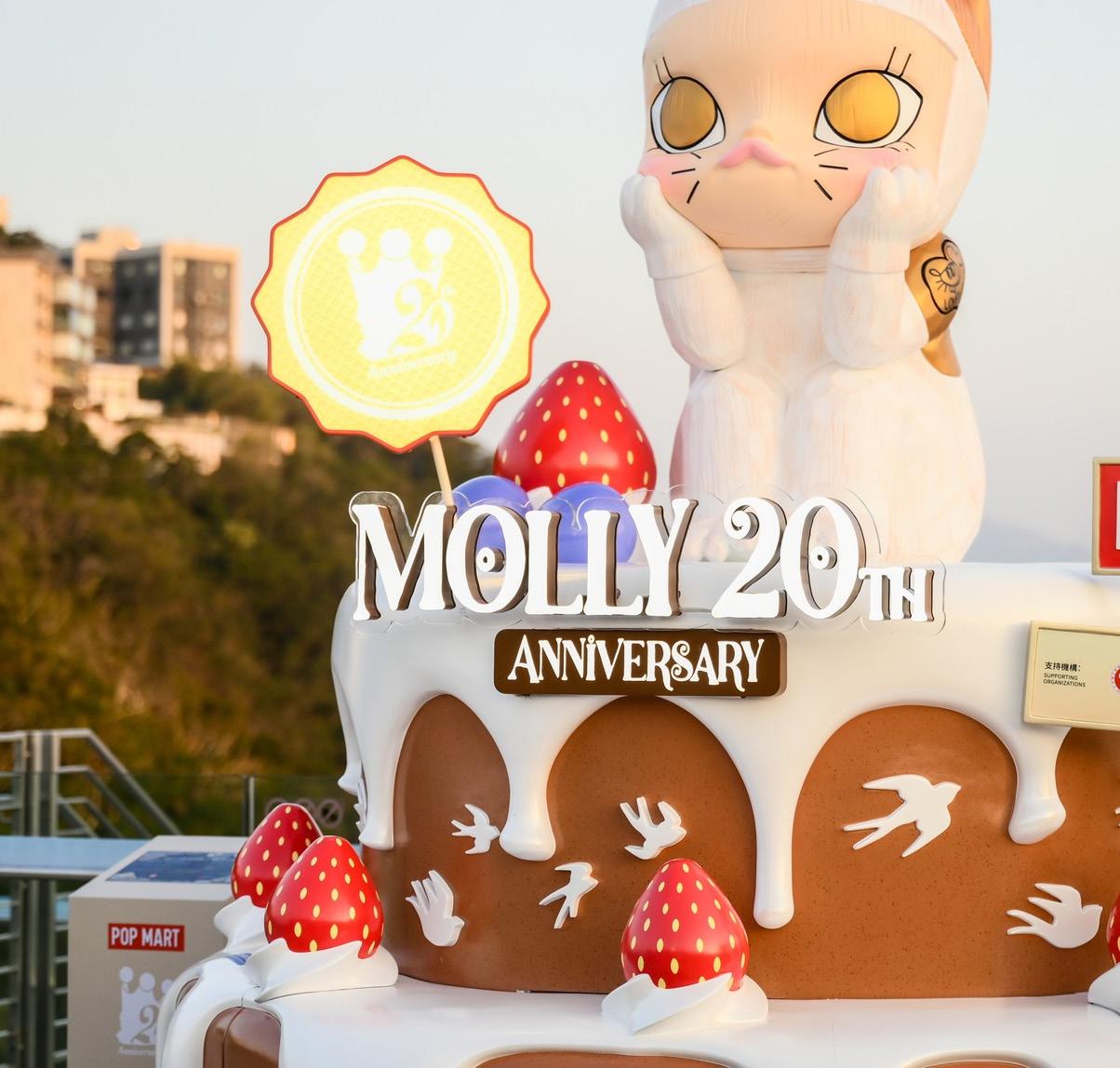 期間限定店登陸太平山頂 MOLLY 粉絲更可前往山頂凌霄閣參與 「MOLLY 星願打卡活動」,於指定地點收集印章, 親手打造專屬你的「MOLLY 星願賀卡」,為這趟 旅程留下閃耀印記!另外,粉絲們不要錯過在山 頂廣場的POP MART MOLLY 20周年主題期間限 定店。限定店門前樹立MOLLY周年雕塑「風和日 麗」,亦加置了多幅MOLLY 20周年特別設計的 插畫,等候MOLLY的夥伴發掘。