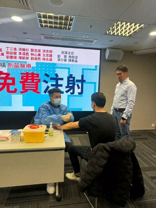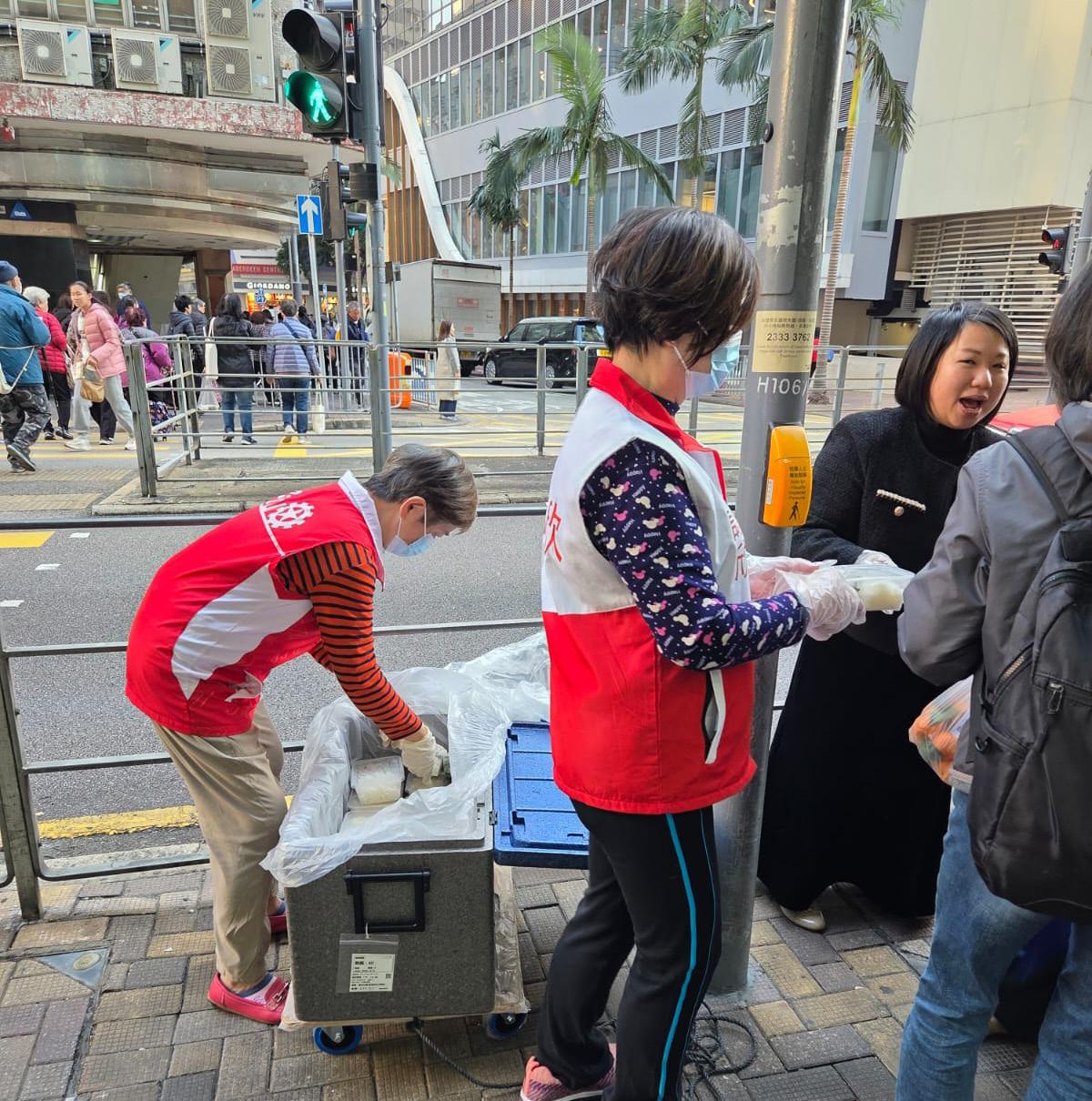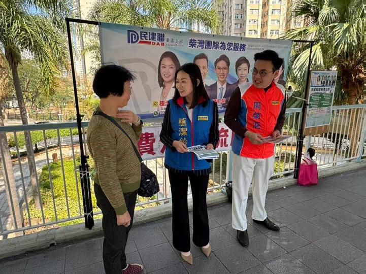 灣仔區議員劉珮珊(右一)、莫繡安(左一) 收集市民意見,指八成居民支持工程