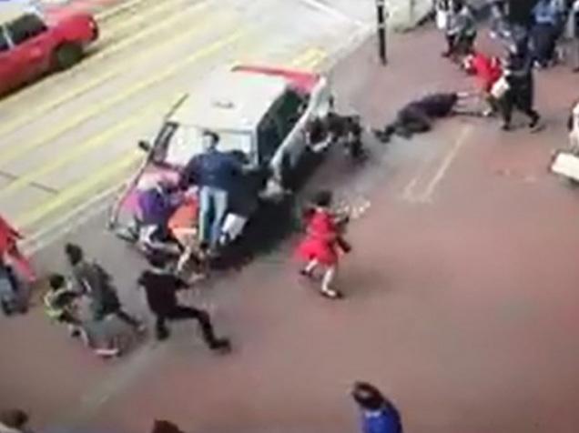 有的士失控衝上崇光百貨外的行人路,導 致8名行人受傷