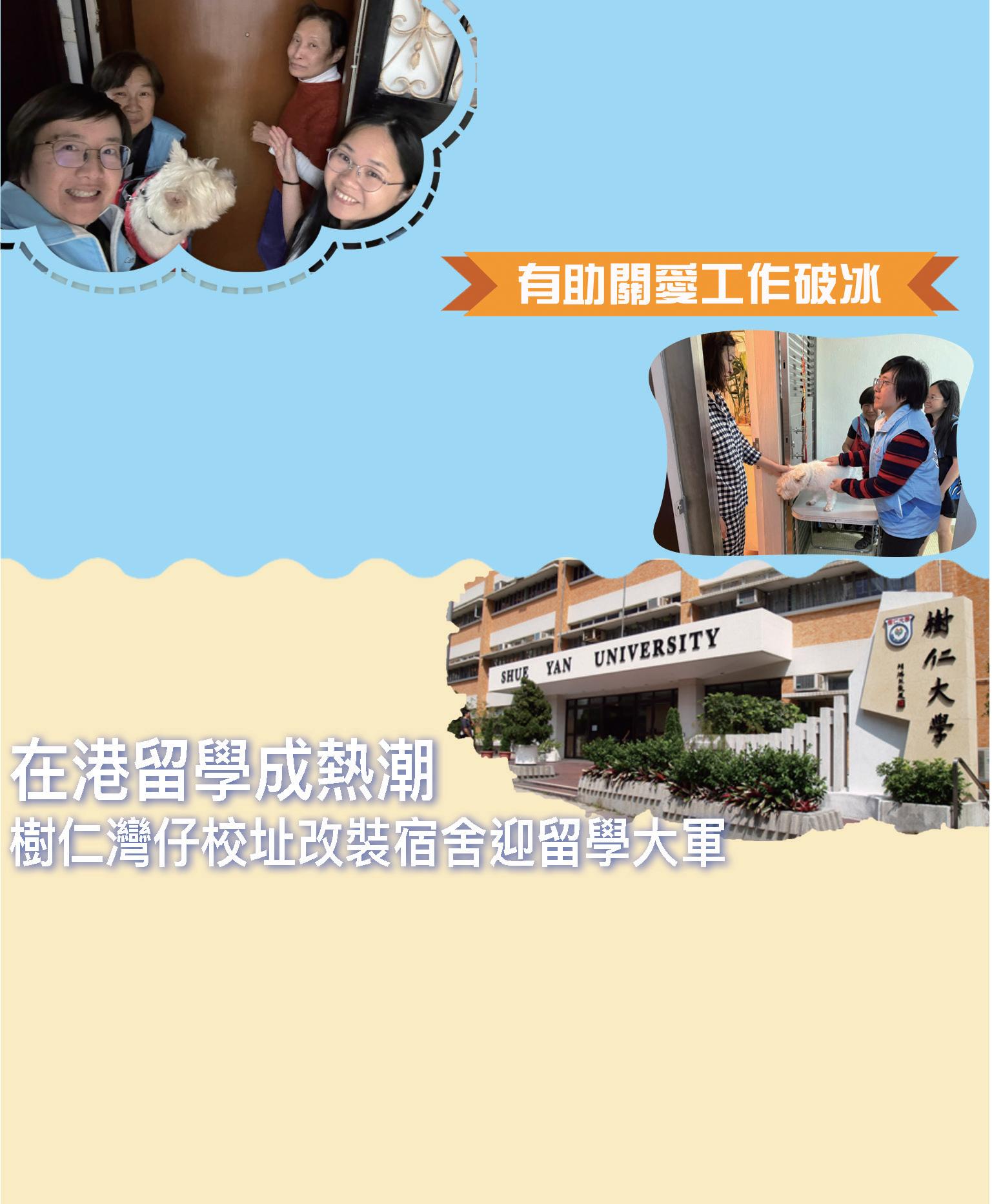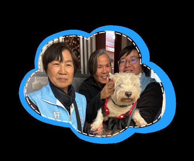 李均頤分享「狗狗大使」上門探訪情況,指寵物上 門頗受居民歡迎,包括有居民看見小狗上門後會有較多互 動,亦有居民在探訪期間積極與小狗合照留念,並分享給 朋友與家人,不但增加話題,亦有助擴大關愛隊觸及圈子, 「特別是有些比較沉默、比較『cool』的長者,在看見狗 狗後明顯更樂於給予反應,部分人會與小狗互動,亦有人 會談及自己的養寵物經驗。這點對我們的工作而言是一大 進展。」