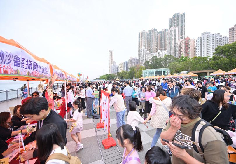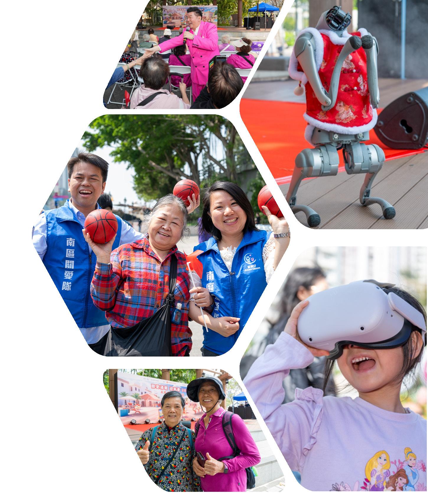 活動現場設有多個互動攤位,包括AR互動遊 戲、投籃挑戰、親子互動遊戲等。主辦單位更特 別加入AI科技元素,設置AI工作坊,讓市民尤其 是年輕人和小朋友有機會接觸最新科技,寓學習 於娛樂之中。小朋友在遊戲區穿梭玩樂,家長則 陪同參與親子活動,場面溫馨熱鬧。