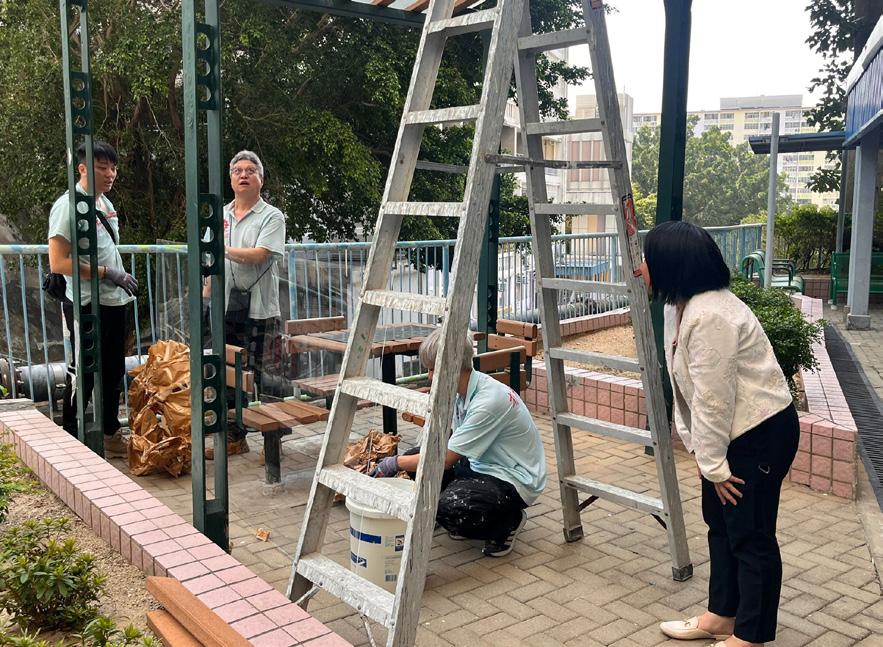 居民反映,隨即了解情況,就維修方案與房屋署展開緊 密協調與溝通,跟進工程進度。經過相關部門與承辦商 的努力,受損的涼亭屋頂現已修復,重新對公眾開放。