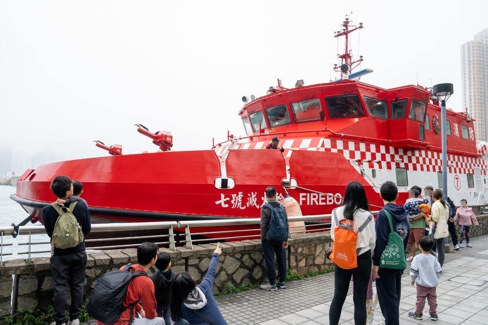 街坊除了可以近距離接觸各款消防及救護車輛,更有機 會登上 停泊 在海濱的救援船——「七號滅火輪」,這是 全港 唯一一艘設有處理化生輻核事故設備的救援船。另外,小 朋友亦可以穿上裝備,成為「小小消防員」或「小小救護 員」,嘗試 各種 不同救援及救護工作。主舞台上消防員 們及救護員亦透過短劇,教導大家善用「AED搵得到」 網上平台及如何施行心肺復甦法。