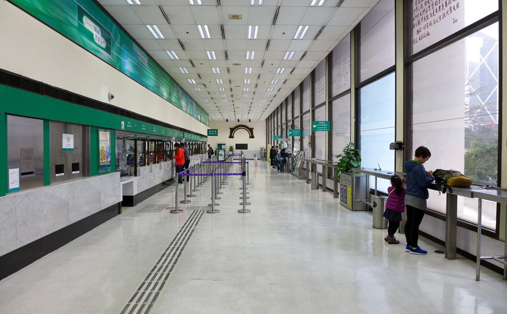走進郵政總局,綠白色為主調的簡約大堂、實用的布局, 與一街之隔的國際金融中心(IFC)的奢華氣派形成強烈對比。