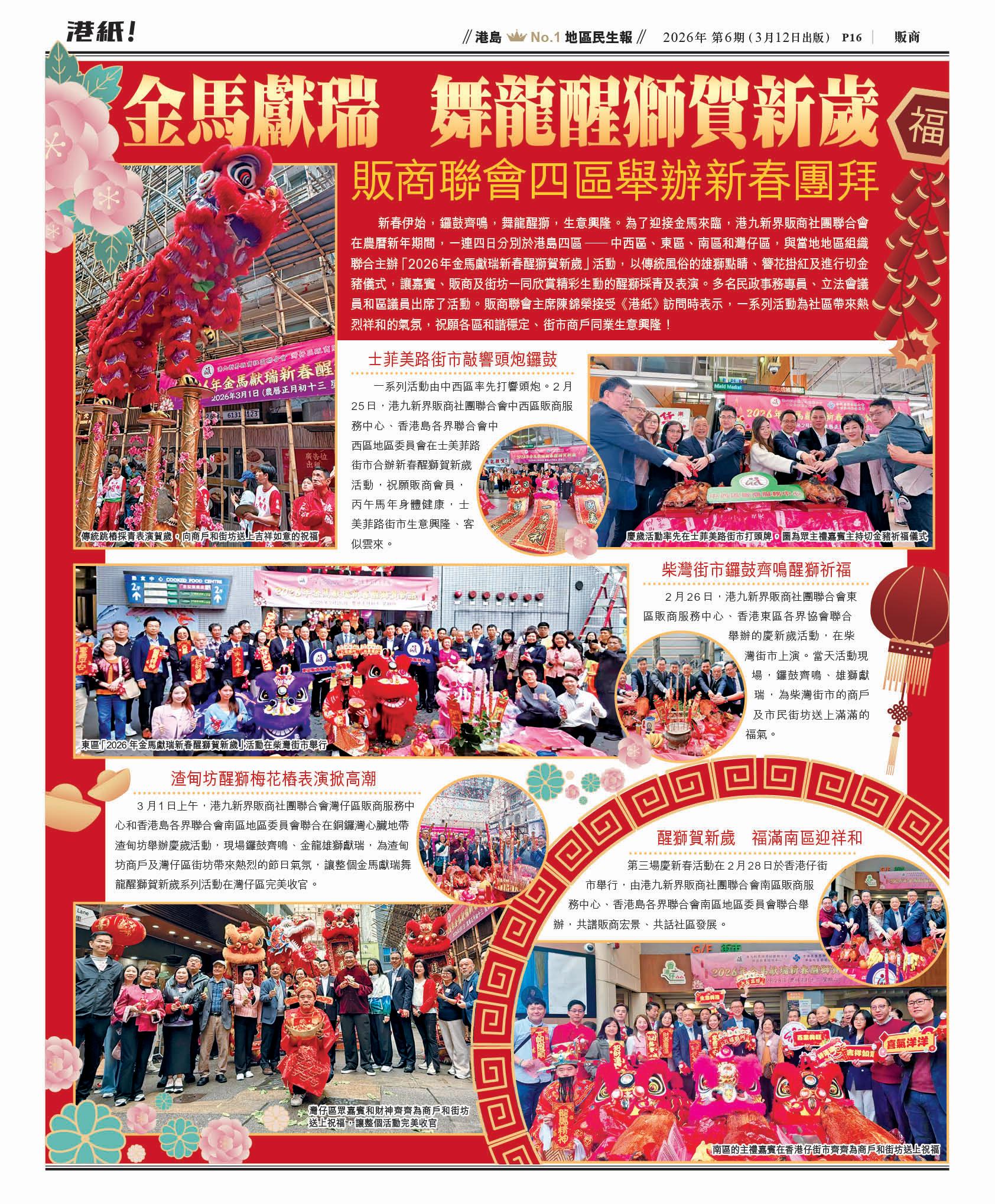 日前,香港南區各界聯會舉辦新春酒會,該會多年來致力服務社區,舉辦多項 大型活動,如萬人盆菜宴及香港仔中秋火龍盛會,凝聚居民並促進社區和諧。過去 一年亦推動南區發展,未來配合「躍動港島南」及遊艇經濟等機遇,並預計舉辦更 多盛事吸引市民及旅客,展現南區優美海岸線與歷史文化,帶動經濟與社區活力。