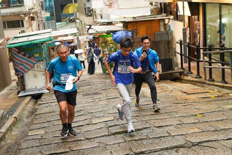 比賽路線貫穿中環、上環和堅尼地城一帶。參加者 需要在有限的時間內爭分奪秒完成各項任務,還要計劃 得分策略。主辦方特別在途中加入了「漫步荷李活道打 卡路線」的貓咪元素,大家都忙著用手機掃描隱藏的打 卡點。另外,大會還精心為「家庭組」和「人寵共融組」 設計了較為友善的短程路線,鼓勵青年、一家大小,連 同寵物,一起享受親子同樂、人寵同行的美好時光,在 中西區每個角落都留下歡笑聲和腳印,享受在城市大街 小巷穿梭的樂趣。