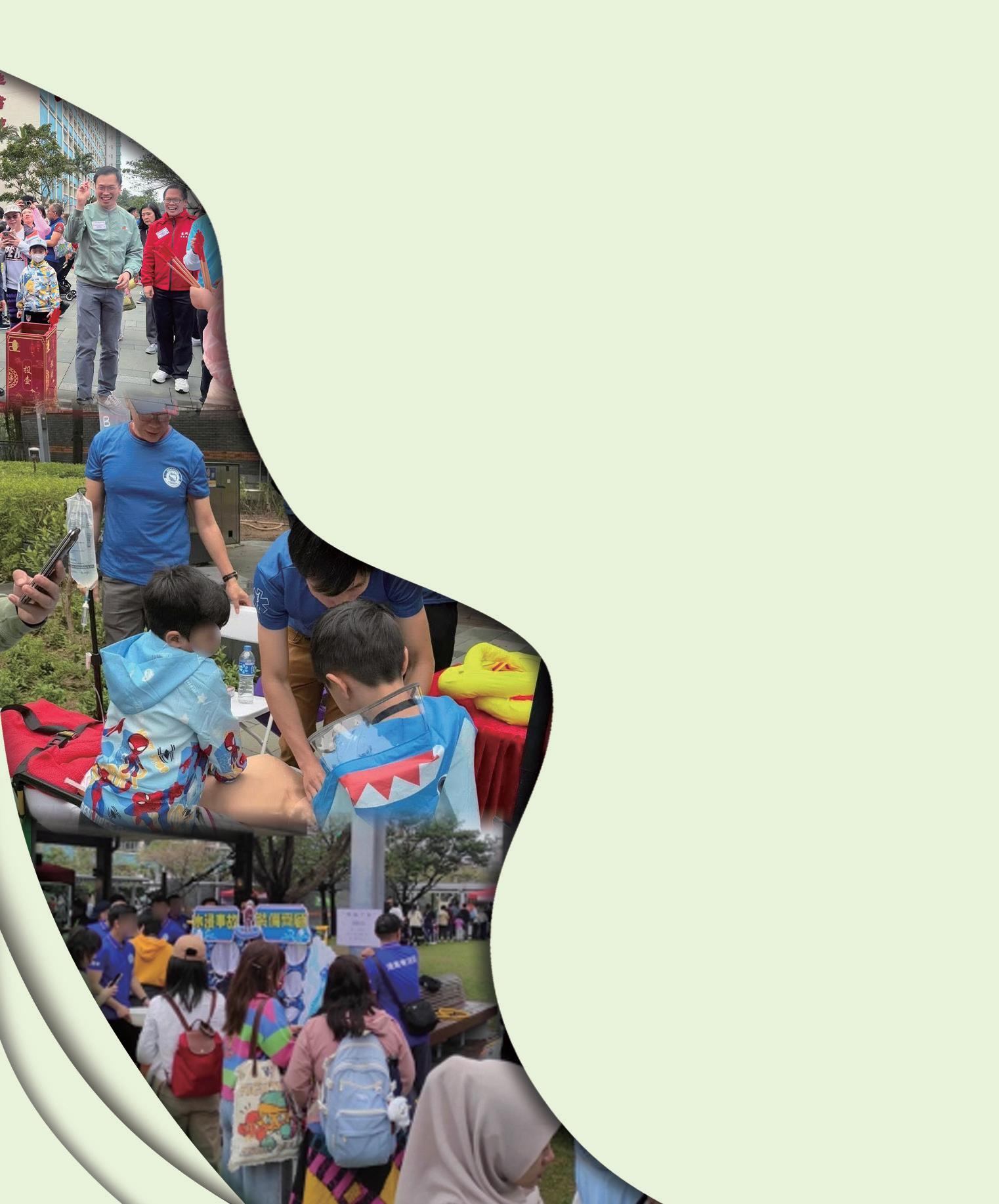 除了消防及救護部門外,現場亦有香 港紅十字會及香港天文台等機構設立攤位,向市民講解不 同類型的應急知識。楊瑞生補充,消防處近年已將消防安 全宣傳提升至「防災應急」層面,希望培養更多具備應急 能力的「社區應急先鋒」,讓市民在面對不同突發事故時 能夠作出適當應對。他也希望透過今次一系列互動體驗及 教育活動,讓市民在輕鬆環境下掌握基本防災技能,進一 步提升社區整體的應急能力與安全意識。