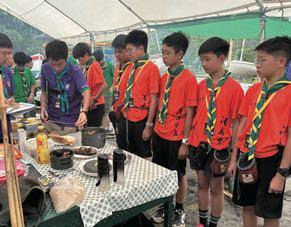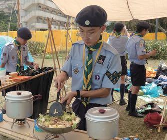 比賽過程中,各小隊氣氛高漲,有隊員持續為小 隊吶喊加油。完成原野烹飪後,小隊立即收拾營區 並進行最後檢查,期間天公造美,直至露營比賽結束 後,大會收拾期間才下大雨。