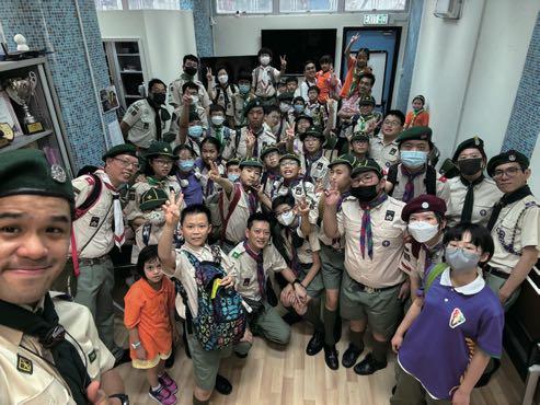 港島第1旅成立於1913年9月,今年度適逢踏入 110周年,亦有鑒於過去幾年旅團活動及發展均受疫情 影響,故以「Reunion • Rebirth」為主題舉辦多項紀 念及慶祝活動,當中包括全旅大露營,除讓成員渡過 了愉快的三日兩夜外,也鍛鍊和考核一下他們的童軍 技能。周年營火會中,成員、領袖、家長、及嘉賓一 起高唱營火歌曲,之後一起進行燒烤,歡聚一堂。