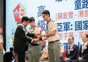 外野日比賽項目結束後,隨即在香港童軍百周 年紀念大樓舉行頒獎典禮。大會很榮幸邀請到地域 副會長周嘉弘太平紳士為主禮嘉賓。典禮中,各小 隊長分享了他們的感受並向領袖及家人致謝。最 終,港島第35旅、港島第15旅及港島第1旅將被港 島地域推薦參加「2024年全港嘉爾頓錦標賽」,相 信這三個代表小隊必會全力以赴,爭取優異成績。