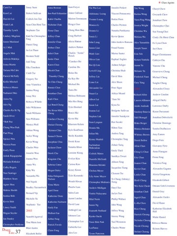Erika DalsgaardNielsen Neil Yajnik Virna Marie Bradley Yarzumbeck April Done Bernard Yip Katherine Dratz Michelle Yu Katherine Fairhurst Stephanie Yue Emily Fan 2003 Philbert Fan Saurabh Agarwal Arthur Fang Tina Marie Assi Patrick Favole Blair Austin Claire Fong Elizabeth Belfer
